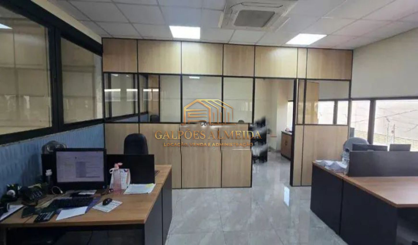 Área escritório: mezanino com salas - banheiro - copa