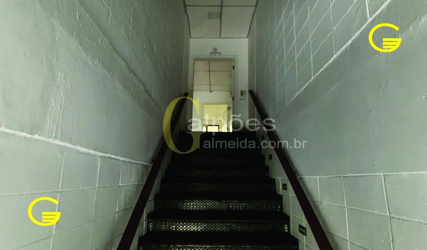 Área escritório: mezanino com salas - banheiros - copa - recepção