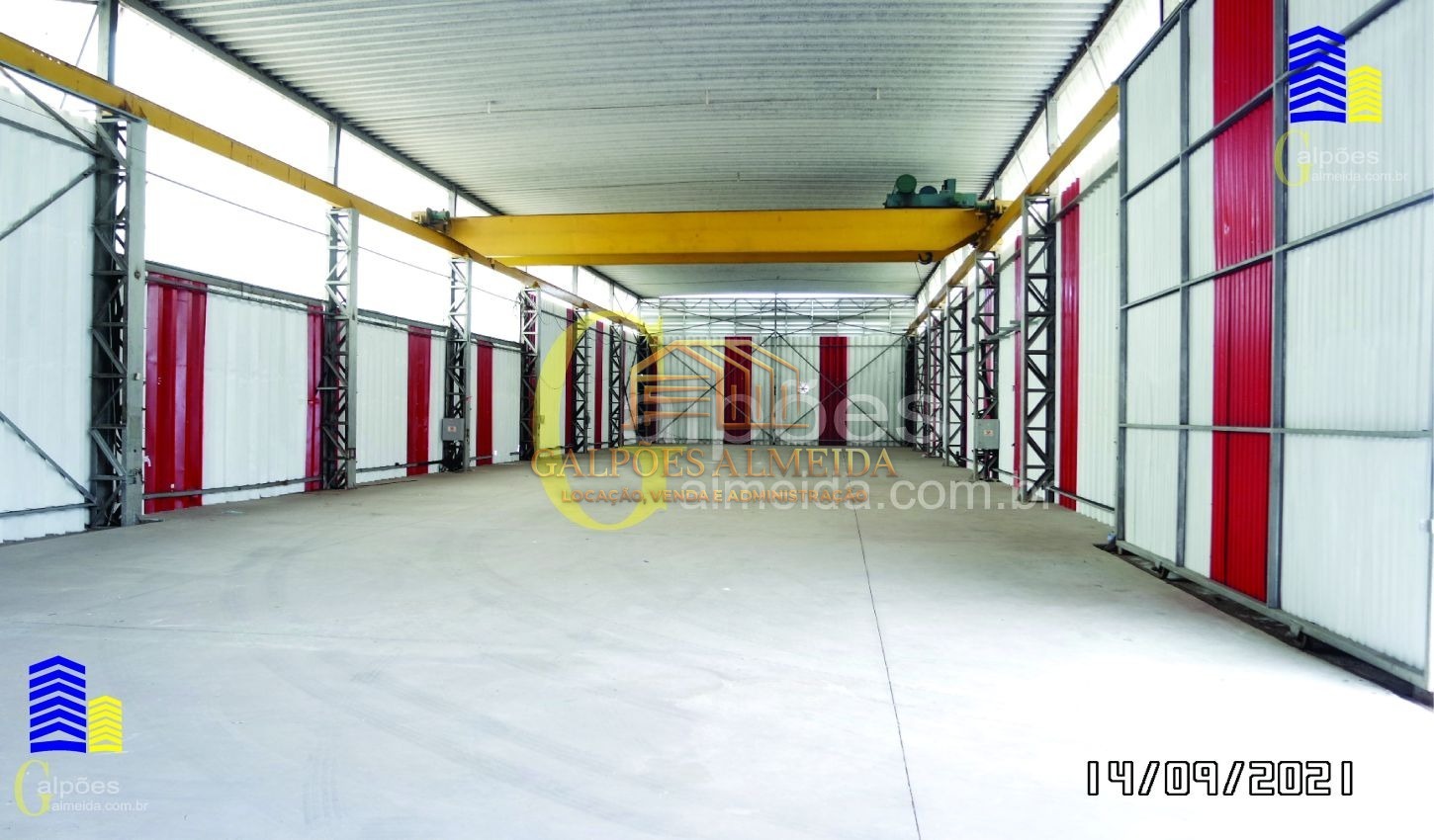 Área galpão: vestiário - ponte rolante para 15 toneladas - altura da ponte rolante 5.69 altura - porta entrada ao galpão com 5.56 x 5.95 altura