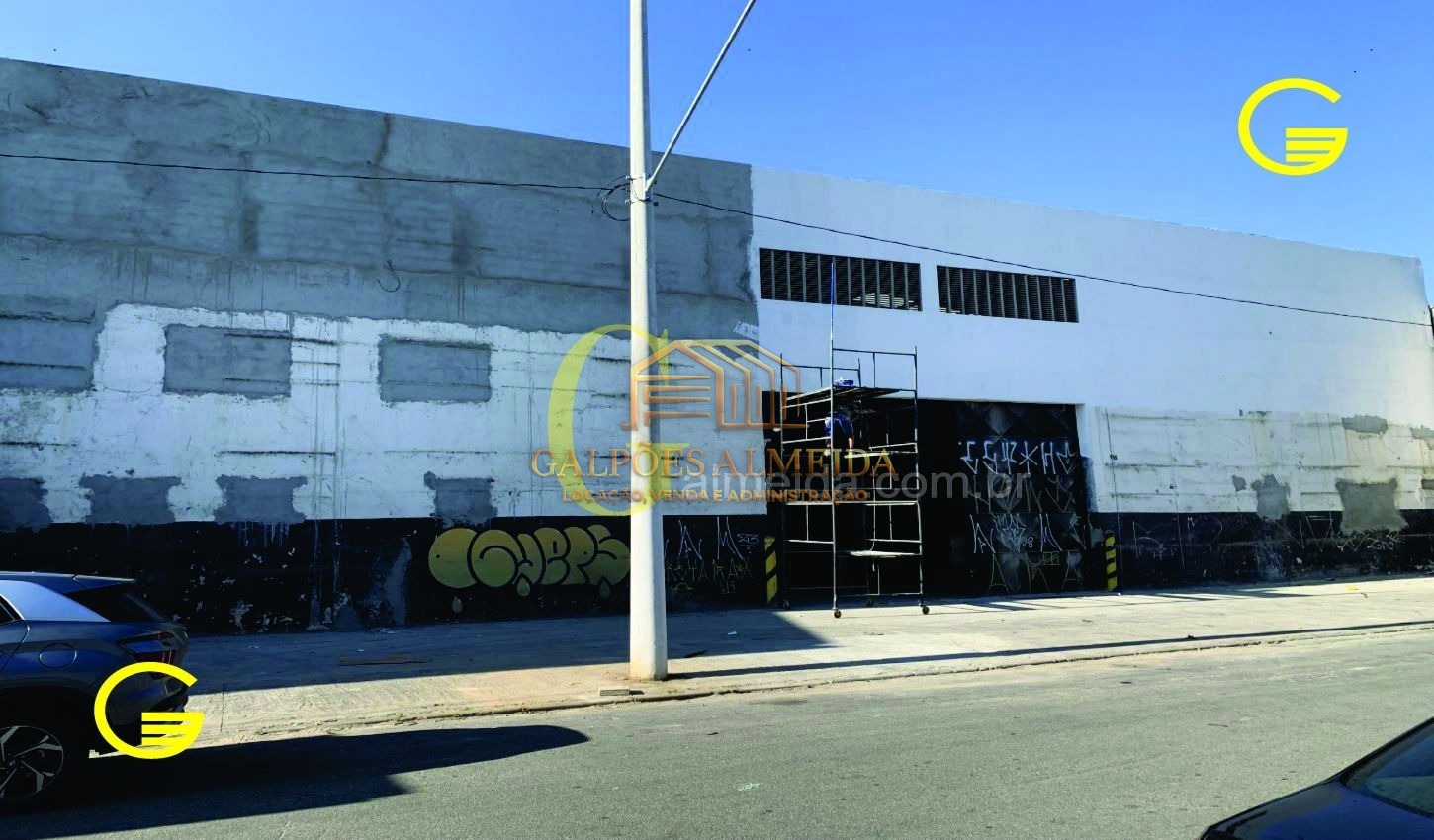 Entrada nível do piso: 3 sendo - Porta frontal com 4.59 x 7.14 largura - Porta automatizada fundos com 7.19 x 4.91 altura