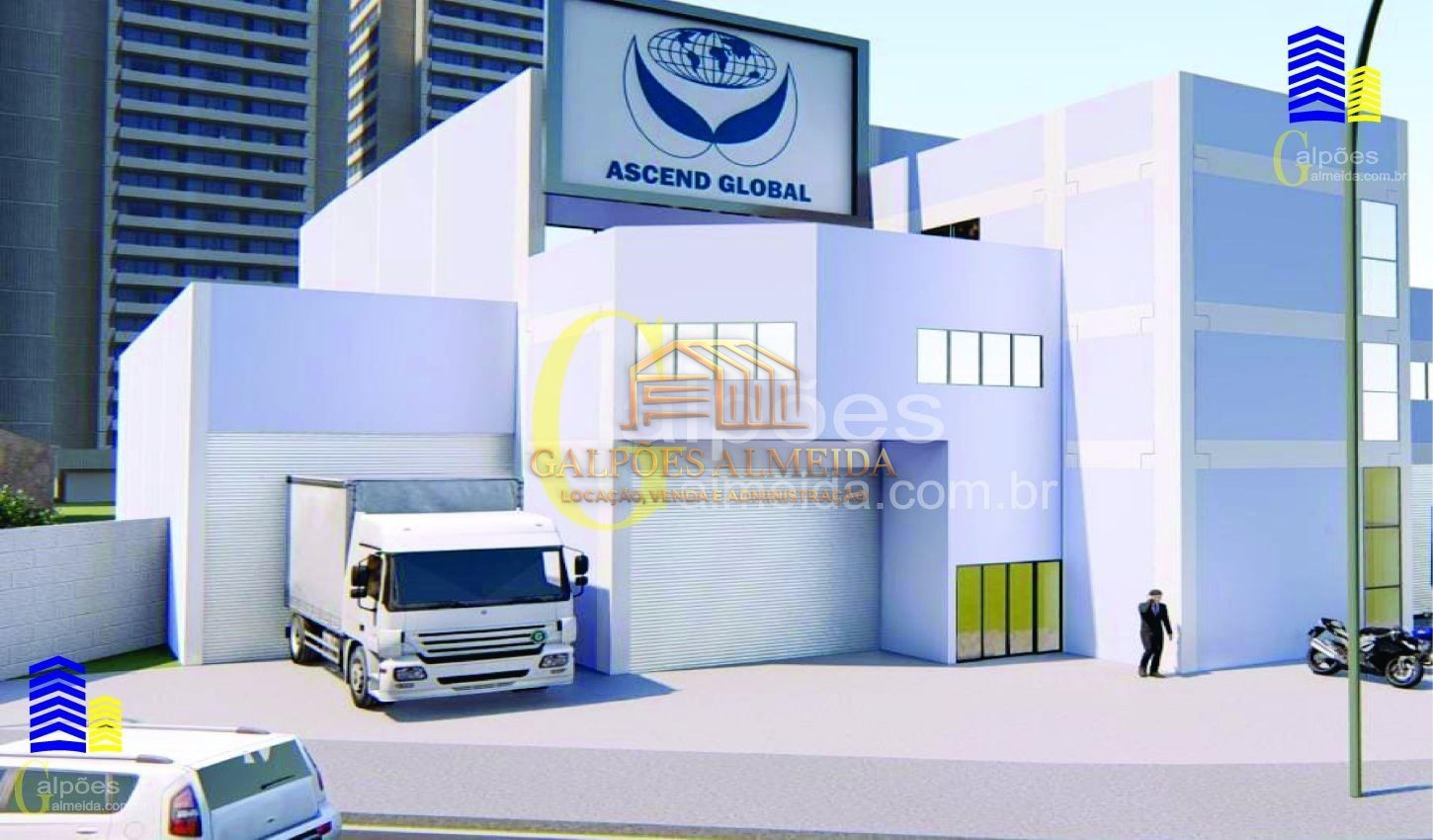 Área galpão: banheiro - porta doca automatizada - mezanino com elevador de carga e piso com capacidade de 2t/m²