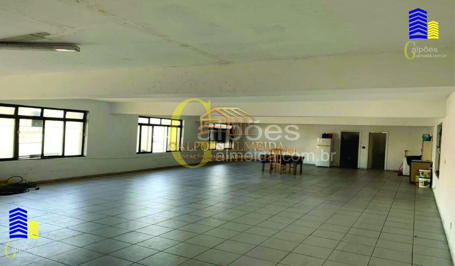 Área escritório: Mezanino com sala vão livre - Banheiro - Recepção
